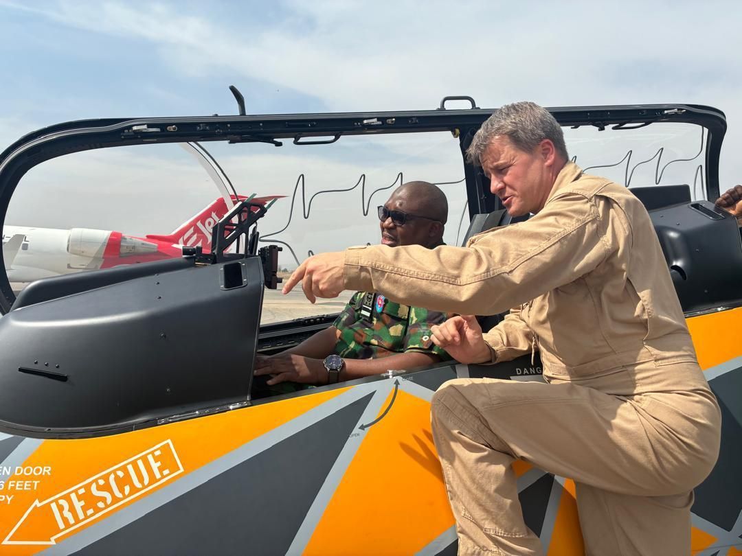 Abuja, Nigérie. David Jahoda představuje letoun Skyfox zástupci velitele vzdušných sil Nigérie.