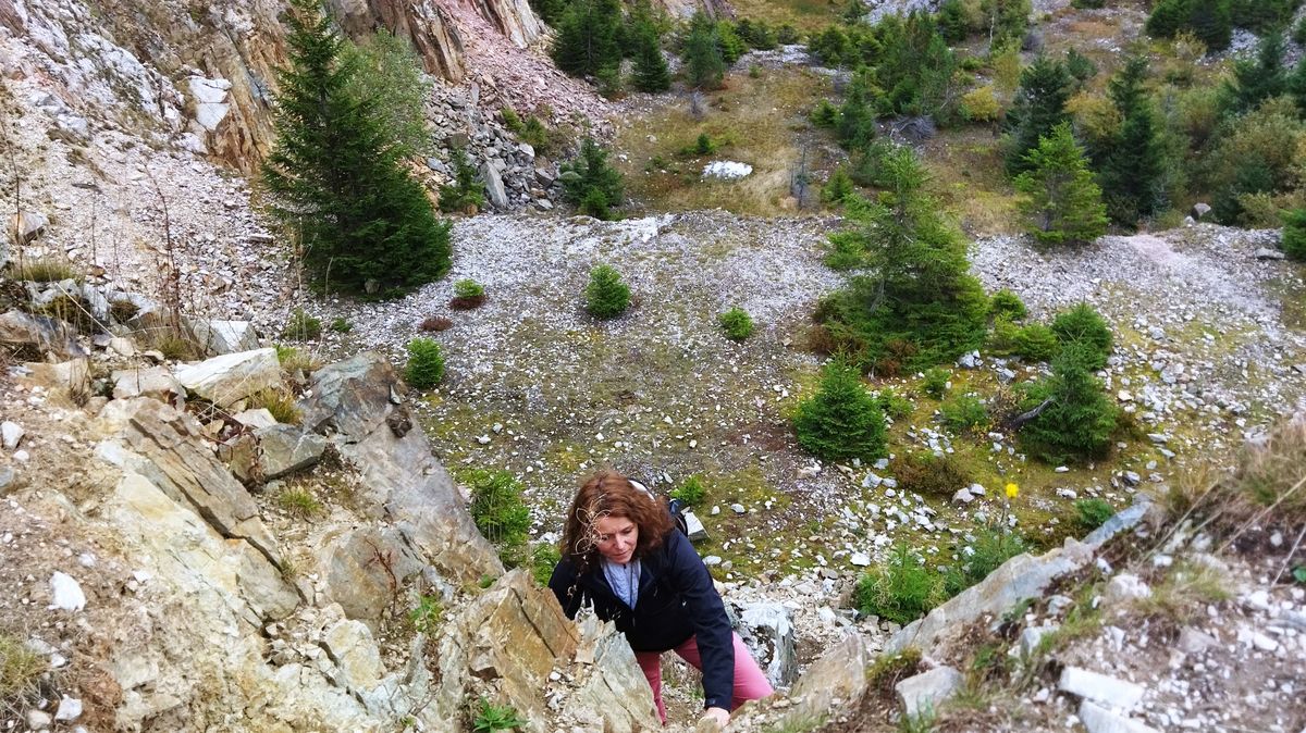 Už na první pohled bylo vidět, že tudy často šplhají odvážní „lenoši“, aby si zkrátili cestu. Naštěstí na skále nechybí dostatek výstupků a zdolat ji není zase až tak velký problém. Ani v našich letech (64 a 52). Přesto jsme si v duchu nedaleké cedule dávali „majzla“. U každého podobného dobrodružství stačí málo, aby skončilo špatně. A rozvaha přece patří v horách vždycky na první místo.