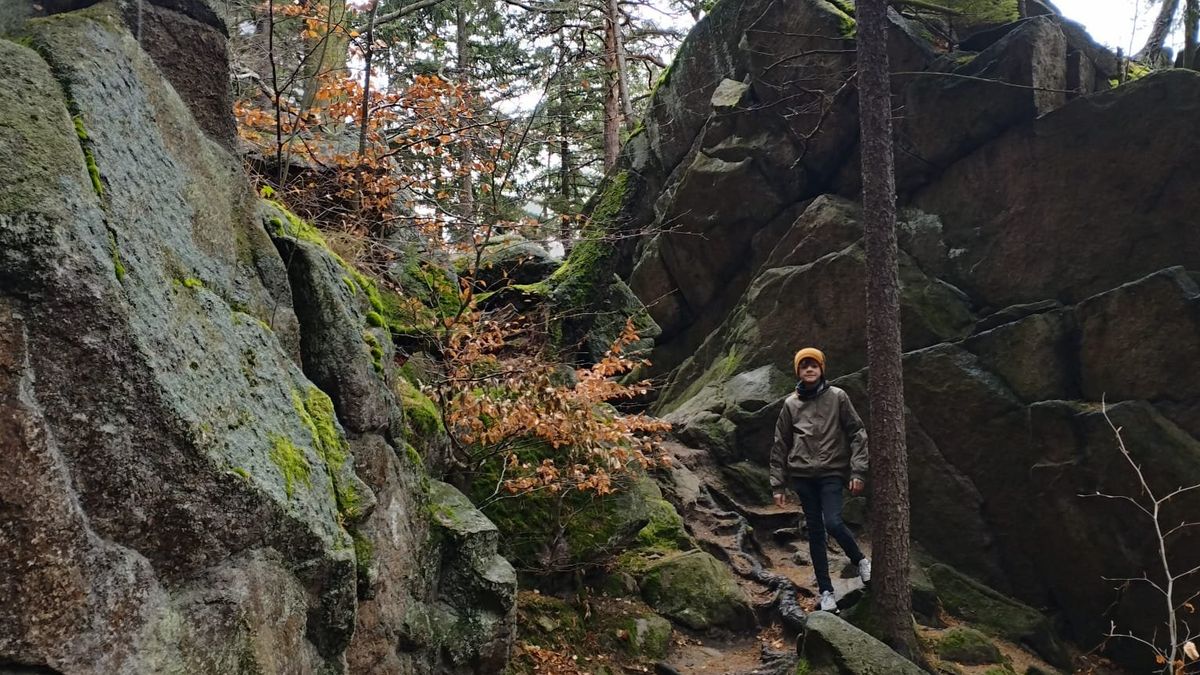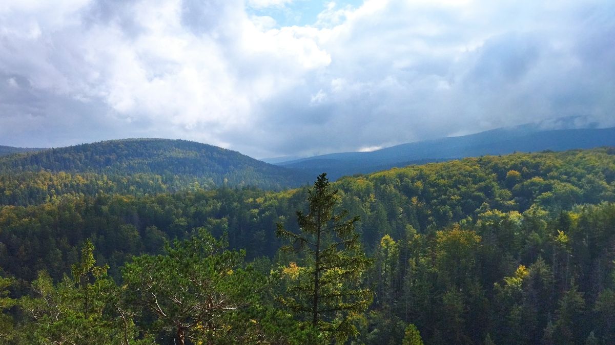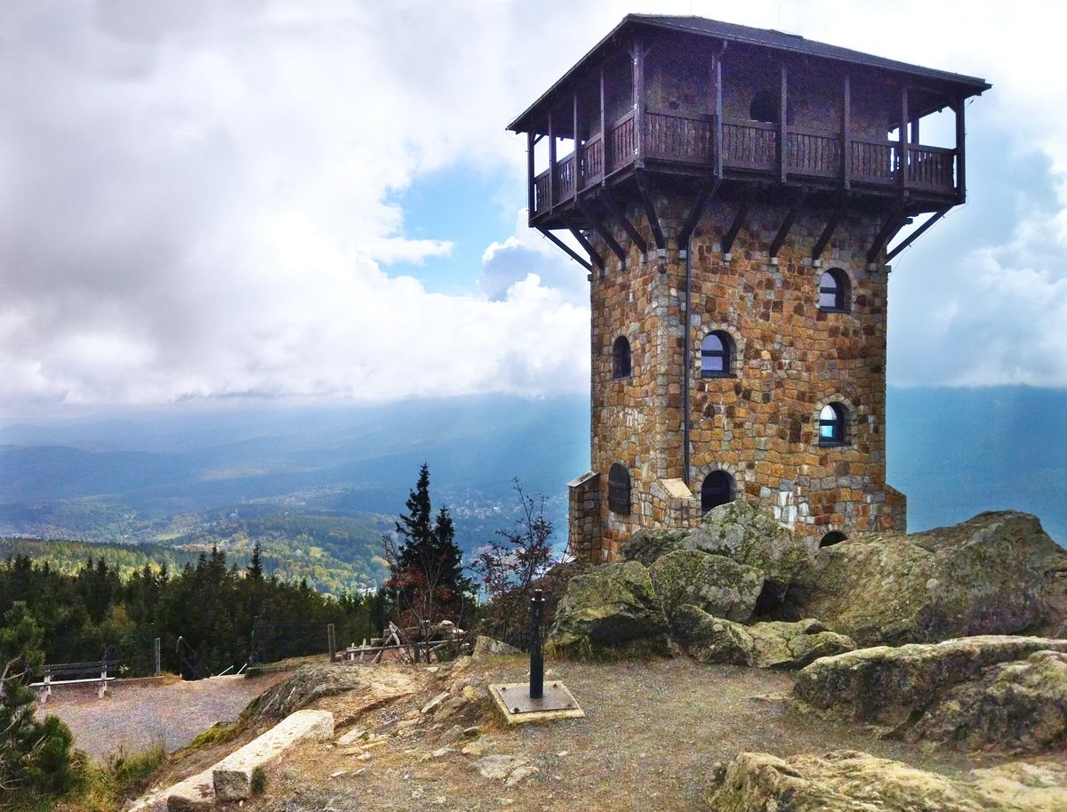 Chtěli jsme si užít trochu klidu a samoty, proto jsme se z městečka vydali západním směrem. Od hotelu jsme se za chvíli dostali na lesní cestu mezi buky, smrky, modříny a břízy. Doškrábali jsme se až na 1058 metrů vysoký Vysoký kámen s rozhlednou, jež se podobá hradní věži.