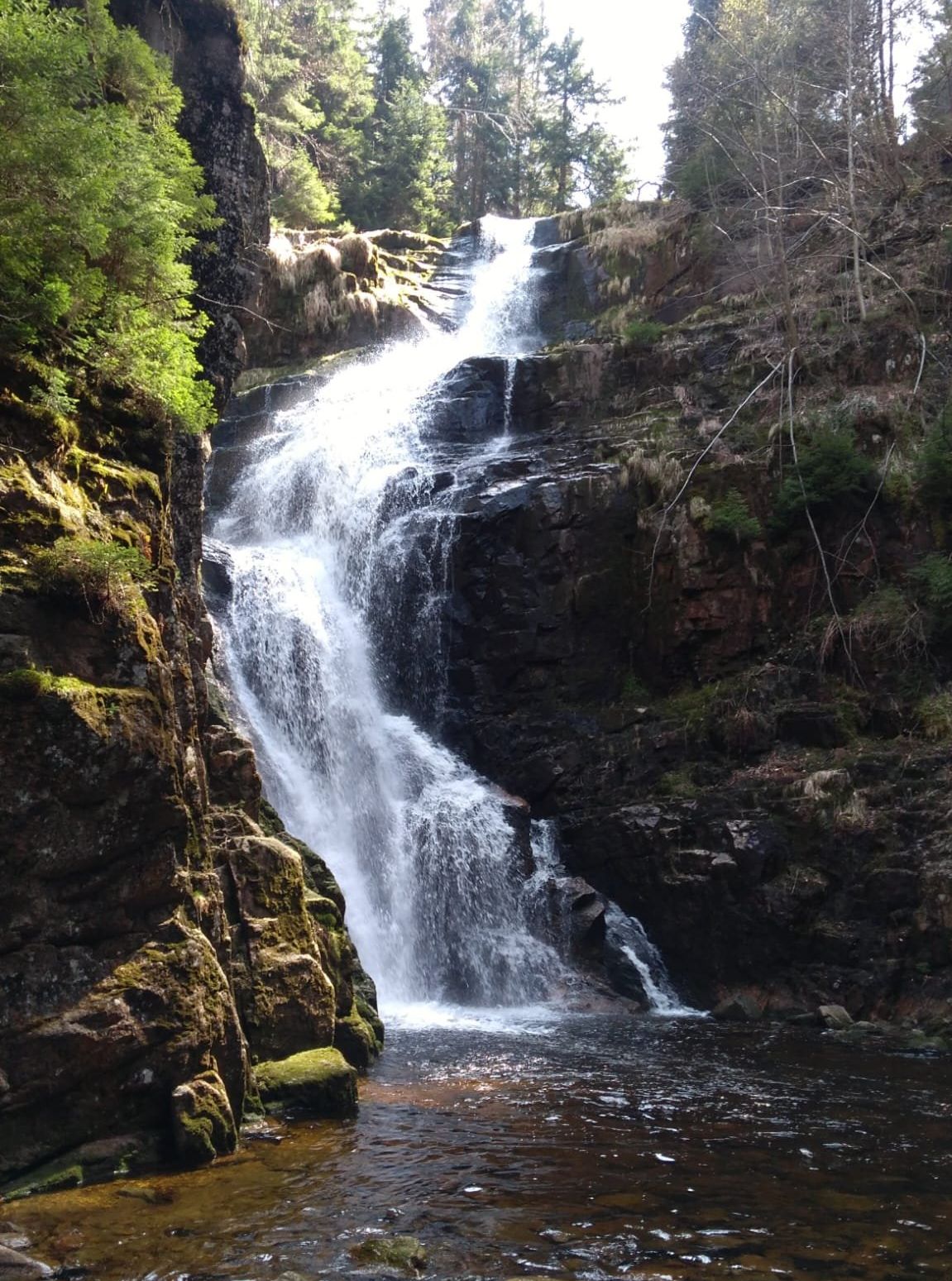 Další krásný vodopád burácí pod Szklarskou Porębou na potoku Szklarka. Leží v národním parku a za vstup k němu se taky platí. Voda se řítí dolů z výšky přes 13 metrů a vedle tůně pod vodopádem se nachází hostinec s výdejním pultem.