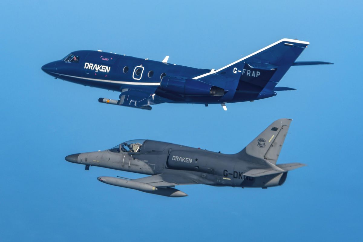 Snímky (nahoře a dole) dobře ilustrují způsob použití L-159 firmou Draken Europe. L-159 operují společně s letouny Falcon 20 speciálně upravenými pro vedení radioelektronického boje. Pro nejmodernější bojové stroje britského královského vojenského letectva tak vytvářejí realistickou simulaci technologicky vyspělého protivníka. Falcon má na palubě prostředky a operátory radioelektronického boje takže ruší radary protivníka, čímž mu například ztěžují zamíření a vyhledání cílů.