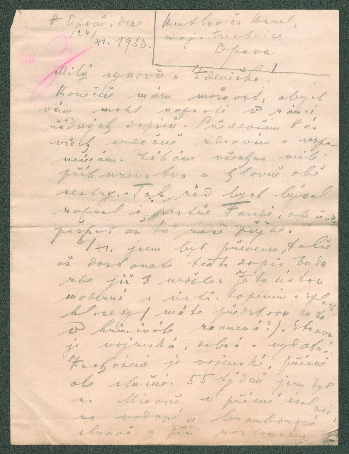 Podmínky ve vězení byly drsné. V listopadu 1950, po převozu z Mírova do Opavy, psal Kutlvašr rodině o svých zkušenostech: