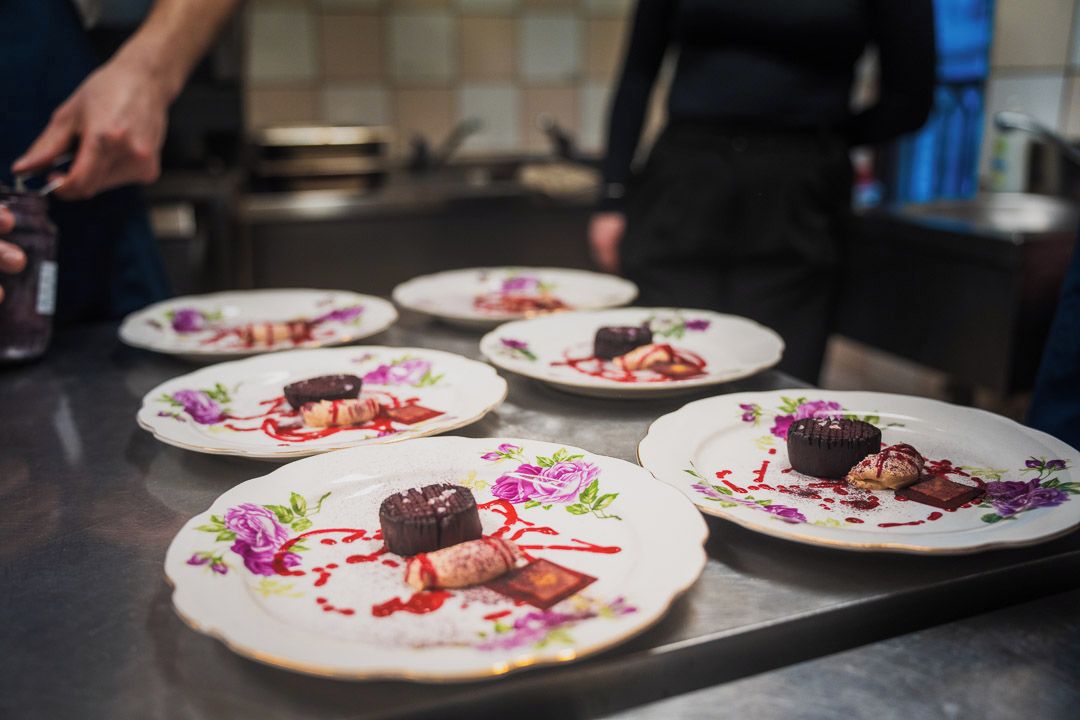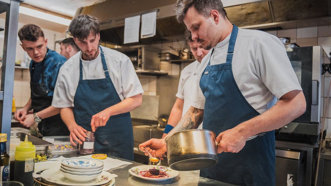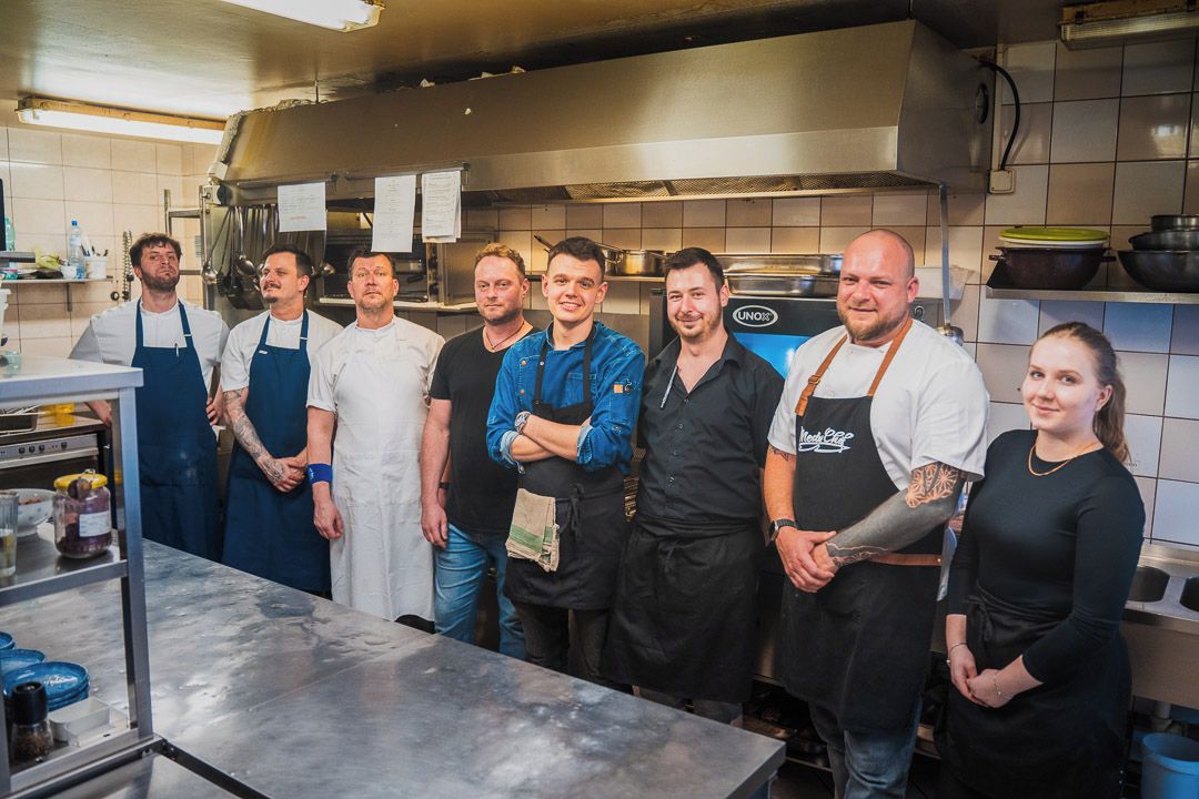 „Chrudim je malé město a všichni se tu známe. Náš dobrý host je Nino Christov, bratr šéfkuchaře La Degustation Bohême Bourgeoise Marca Christova, který tady s námi dnes je také. Původní myšlenka byla taková, že uděláme společnou akci jen s Marcem, nakonec se na ni ale připojila Nová česká, za což jsem moc rád,“ vysvětluje majitel bistra Daniel Regent, jak se stalo, že jeho malá kuchyně v prvním patře nyní praská ve švech.