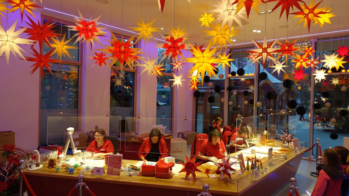 V showroomu firmy se návštěvníci dozvědí o historii a vývoji hvězd nebo se podívají na krátký film o manufaktuře. Mohou si také udělat malé plastové hvězdy. „Kromě toho pořádáme workshopy zaměřené na výrobu větších papírových hvězd nebo dekorativních aranžmá,“ konstatuje Petzoldová.