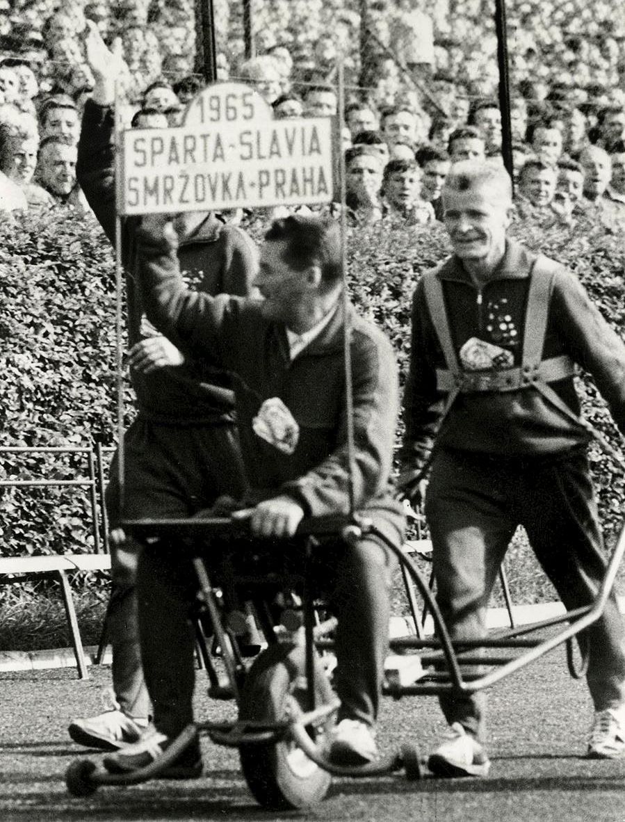 Sparťanský fanoušek Antonín Pavlíček tehdy vezl slávistu Františka Pacáka na speciálním trakaři ze Smržovky až na pražský Strahov, kde se před 50 tisíci diváky hrálo slavné derby Sparta – Slavia.