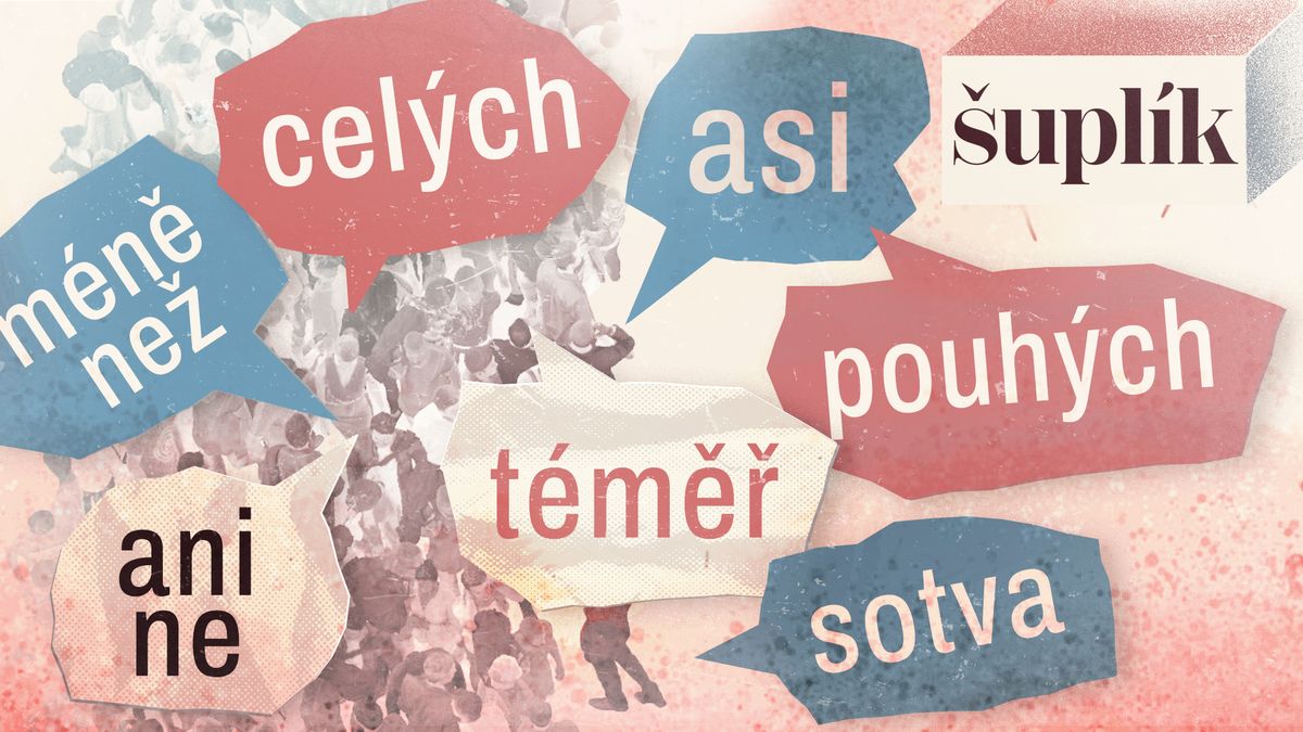Jazykové zaokrouhlování spočívá v tom, jakým přídavným jménem, příslovcem - a někdo to dokáže i citoslovcem - dopovíte příslušnou cifru. Co je „více než“ a „přes“ a co „méně než“, „bezmála“, „téměř“ a „necelých“. Anebo, a to už je opravdu vybroušená pomůcka, kdy číslo zaokrouhlit slůvkem „takřka“.