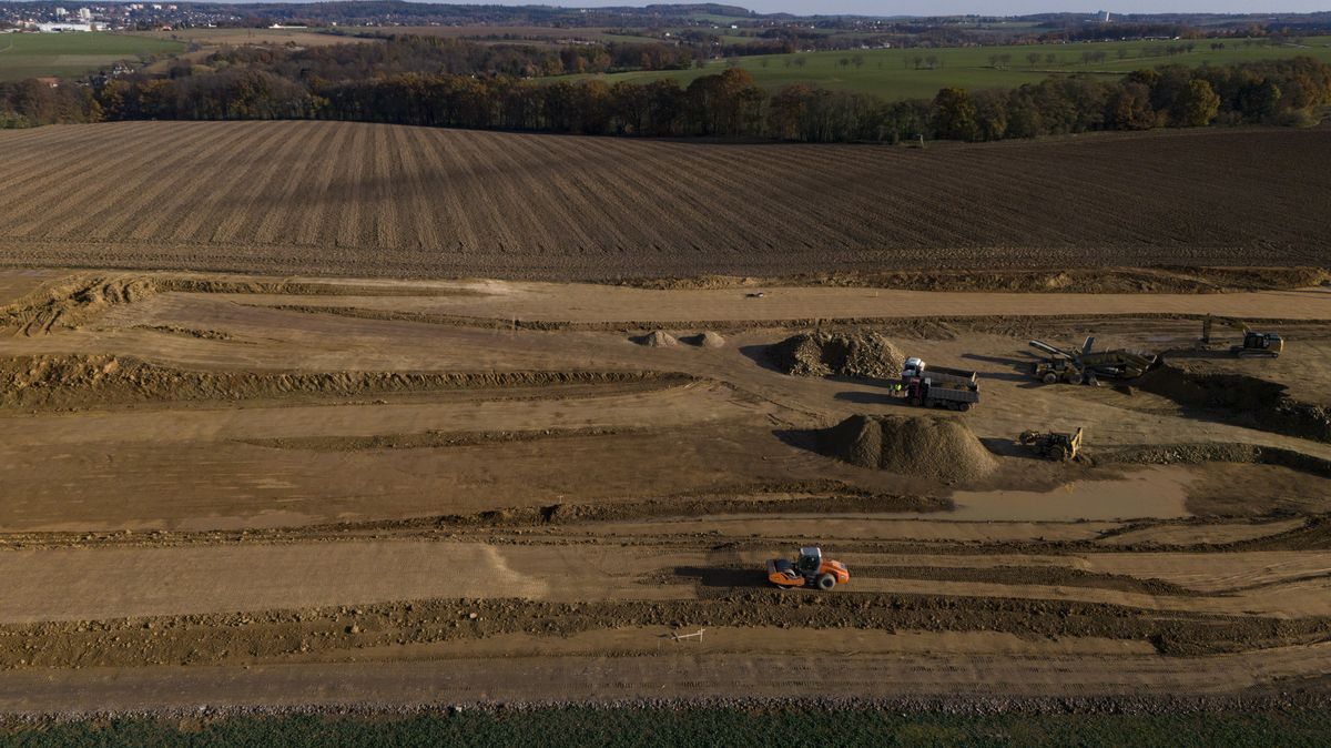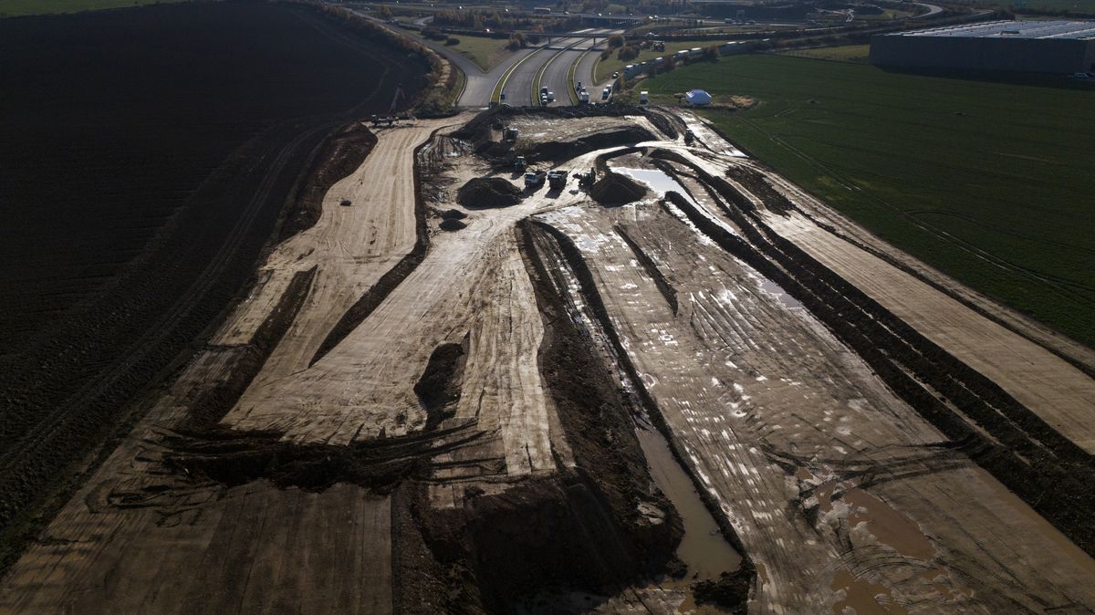 Foto z výšky: Dálnice utnutá v poli. Jak se staví obchvat největšího města