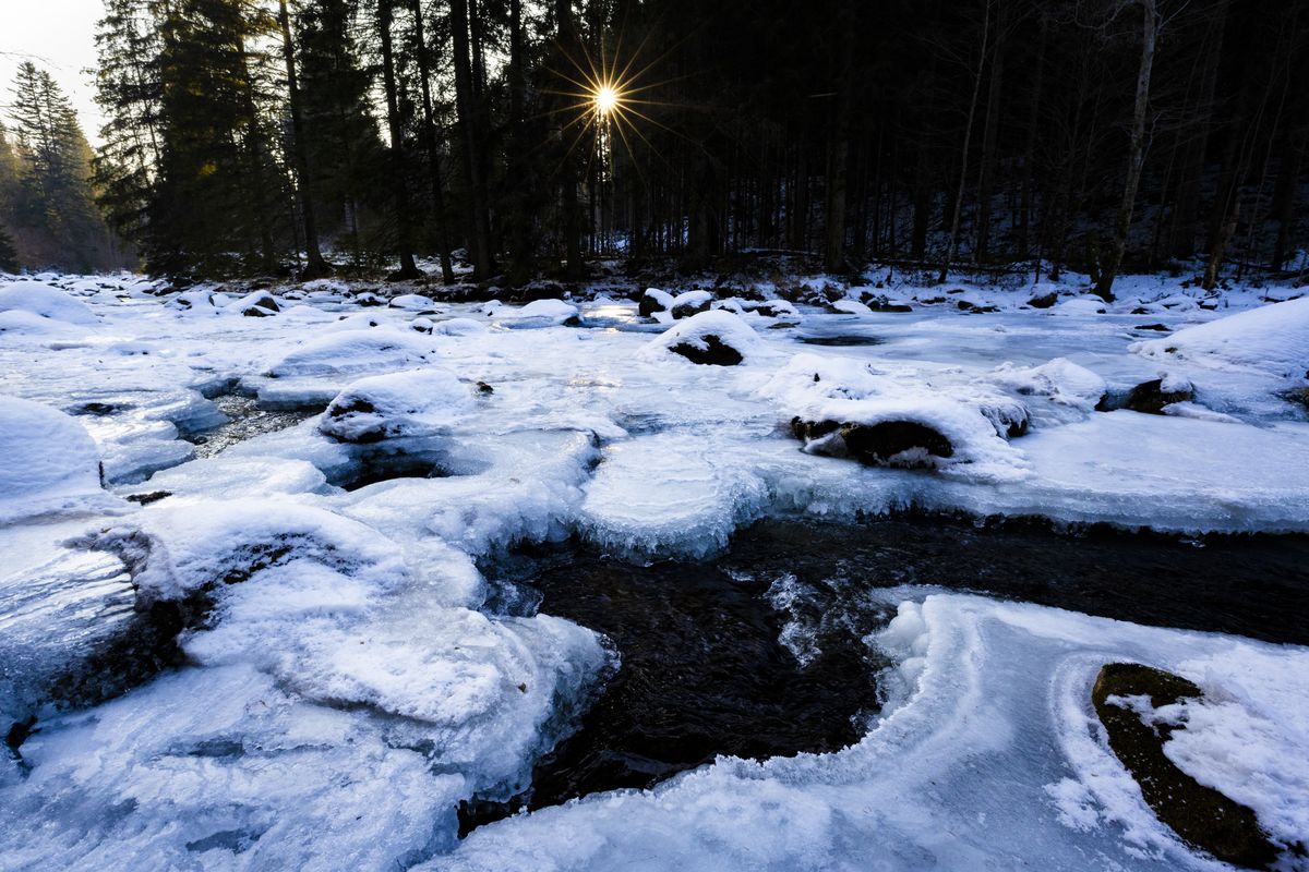 Dlouhotrvající mrazy připravily pro návštěvníky Šumavy pohádkovou podívanou. Čeňkova pila zamrzla mezi obrovské rampouchy a řeka Otava zanesla do Sušice kry, které už tu několik let nepamatují.