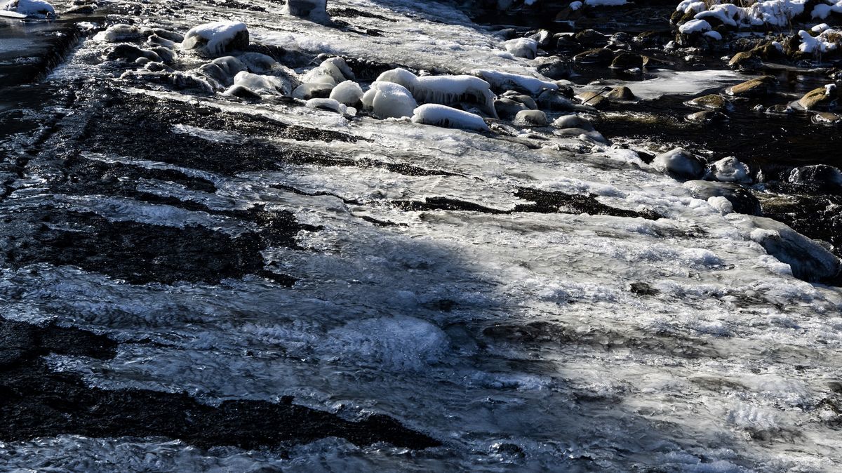 Ledová Šumava. Koryta plná ker, „rampouchový most“ a mráz