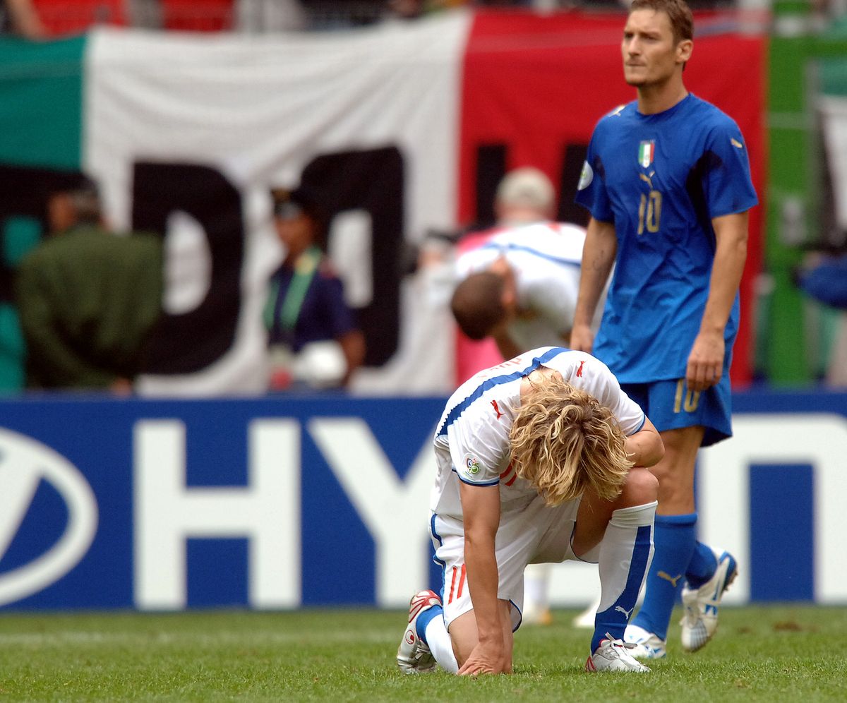 Pavel Nedvěd poprvé a naposledy na mistrovství světa. Porážka 0:2 s Itálií ho poslala domů hned po základní skupině.