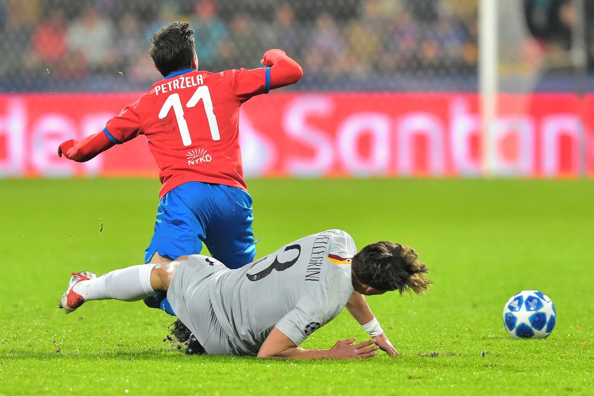 Nestárnoucí, rychlý, faulovaný. Momentka z Ligy mistrů 2018. Luca Pellegrini z AS Řím za chvíli uvidí žlutou kartu.