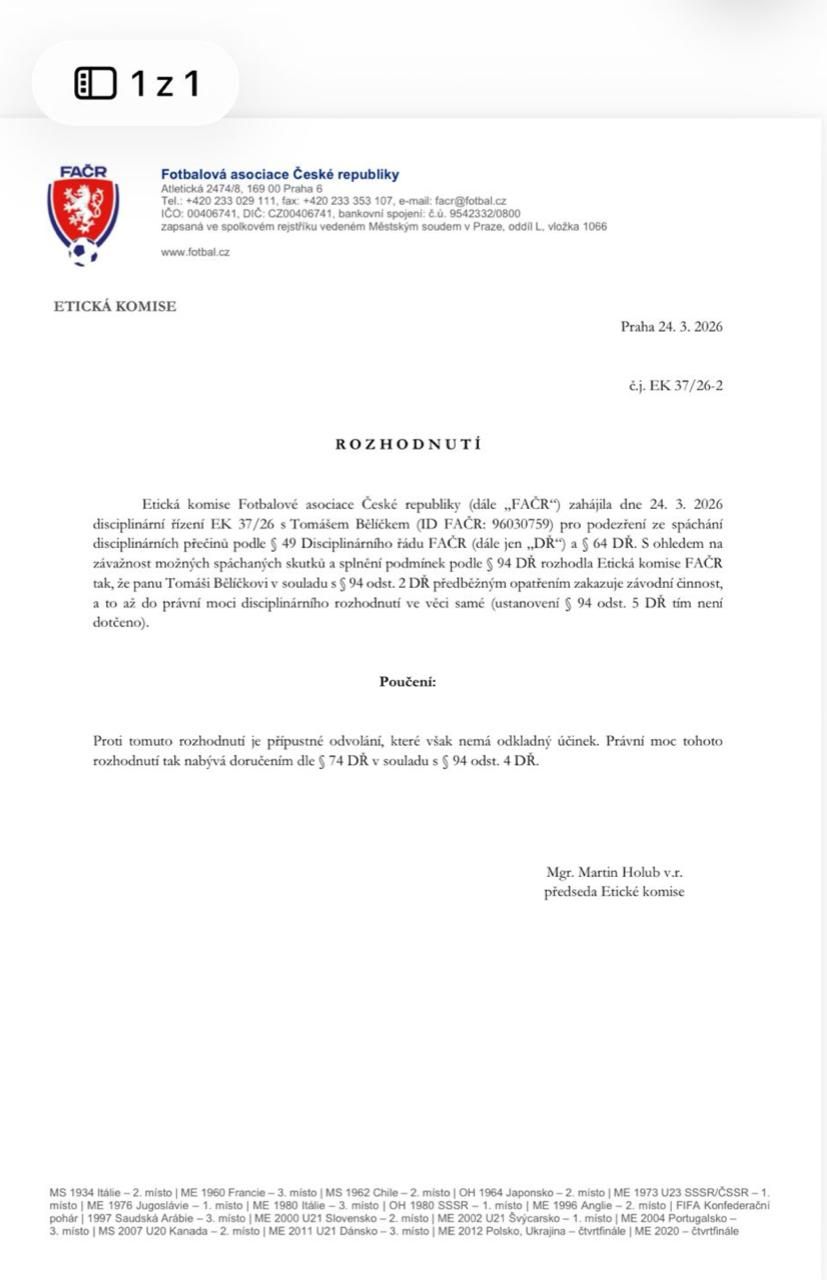 No vidíte a já si myslel, že si ze mě spoluhráči vystřelili a poslali do společného chatu obrázek od AI. Že ho předělali a připsali tam jméno Bělíček. Teprve když jsem rozkliknul svazové stránky, polilo mě horko: Co to má jako znamenat?