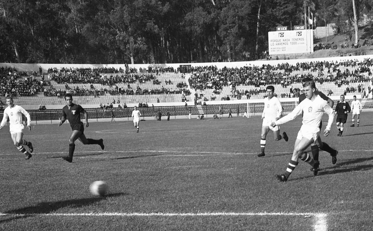 Slavný gól Václava Maška (vpravo) při utkání s Mexikem na MS 1962.