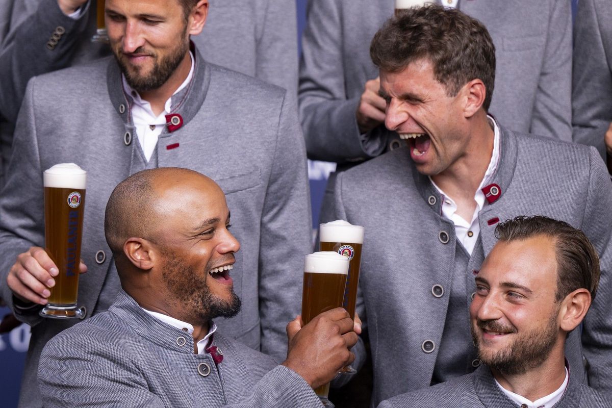 Při předloňském reklamním focení s Thomasem Müllerem. Právě na Vincenta Kompanyho padla nevděčná role odstavit stárnoucí klubovou ikonu ze základní sestavy.