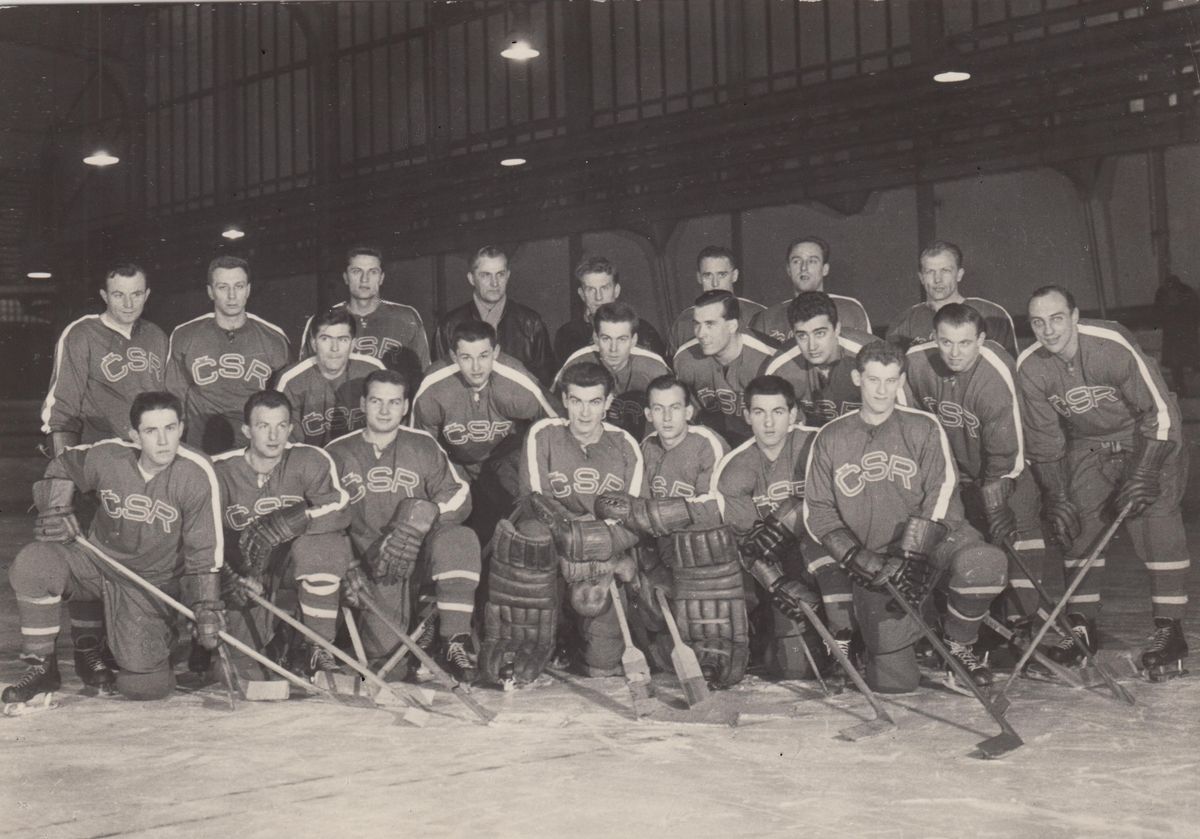 Hokejový tým Československa na olympijských hrách v roce 1960 ve Squaw Valley.
