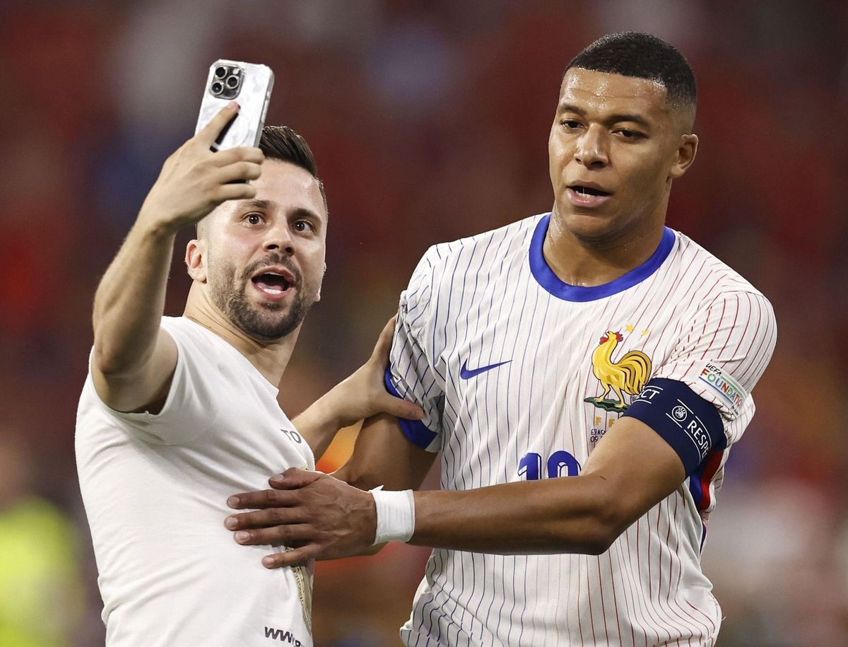 Dříve sportovce pronásledovali neúnavní sběratelé autogramů, dnes jsou to otravní lovci selfíček. Jeden z nich takto vyběhl za francouzským fotbalistou Kylianem Mbappém při semifinále EURO 2024.