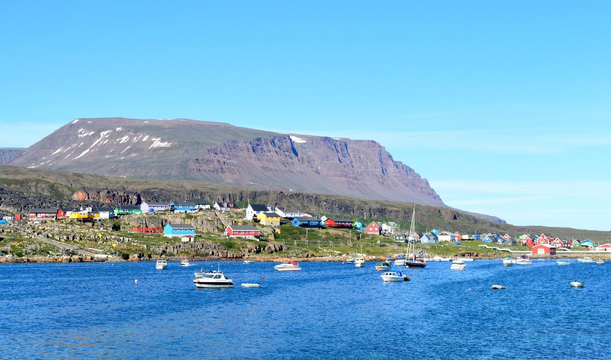 Městečko Qeqertarsuaq ve střední části západního pobřeží Grónska, v jehož blízkosti probíhají výzkumy.