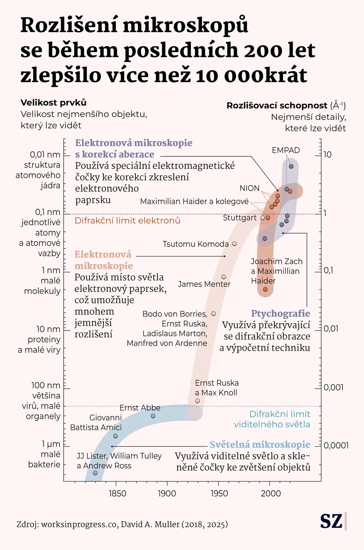 Vývoj rozlišení mikroskopů.