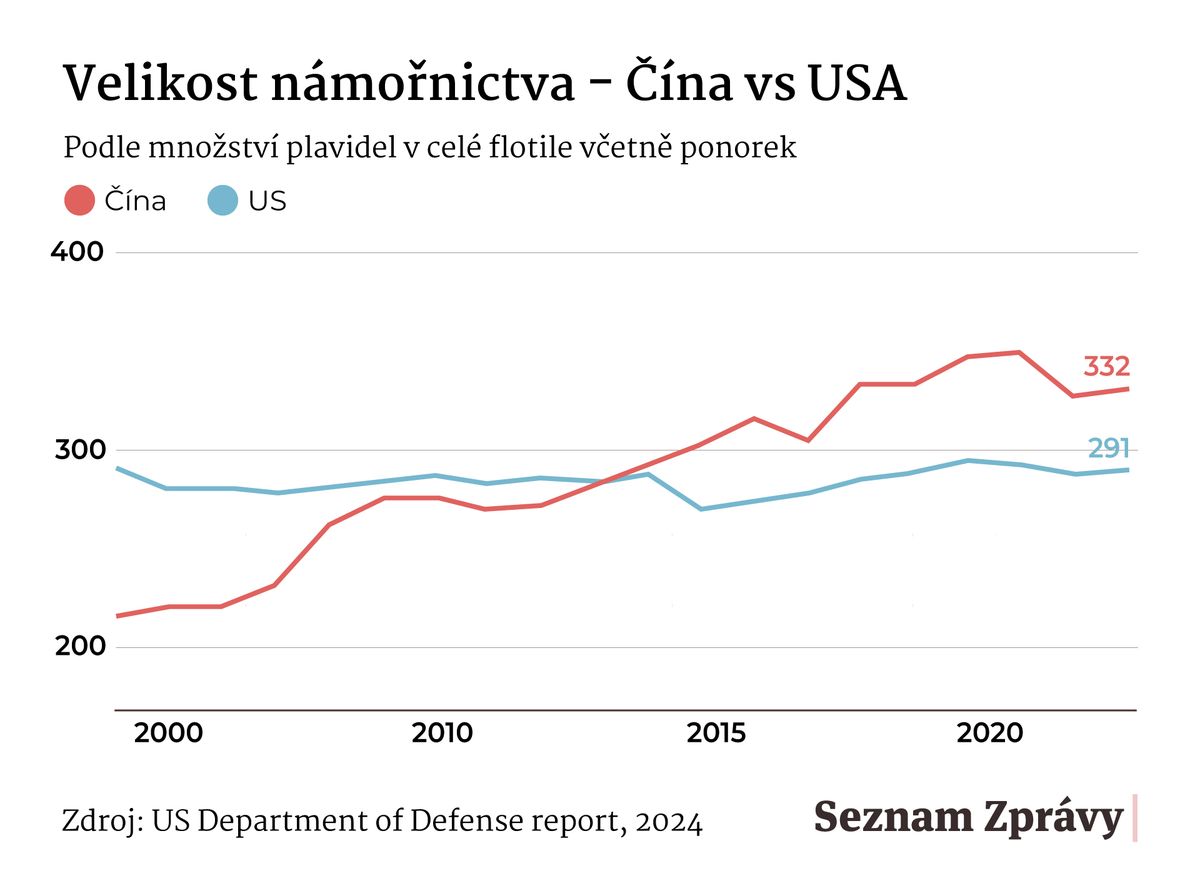 Čína navíc ještě loni porážela USA i co do velikosti celého námořnictva. Podle tehdejších údajů amerického ministerstva obrany provozovala celkem 234 válečných lodí, přičemž Spojené státy měly 219 strojů. A při započtení ponorek je rozdíl ještě větší. Komunistická strana Číny tak má zřejmě největší flotilu na planetě.