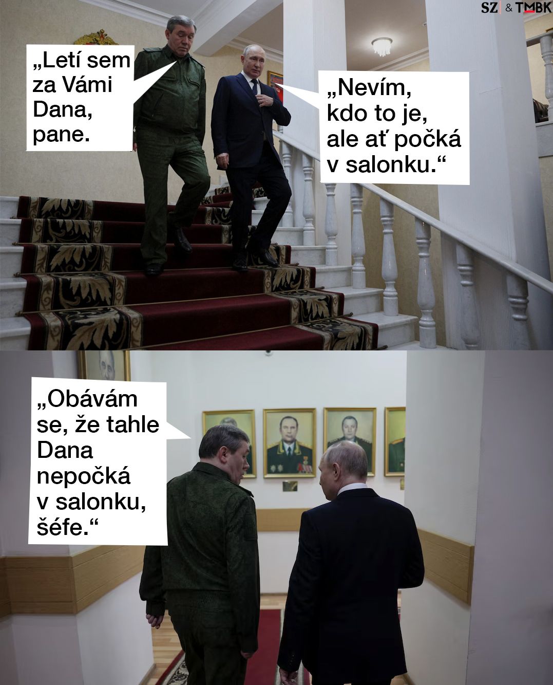 Češi se složili na střelu, která je podle ukrajinského výrobce schopná doletět až do Moskvy nebo Petrohradu. Jmenovat se bude po Daně Drábové. Přijme Putin Danu v salonku? Koláž TMBK pro SZ.