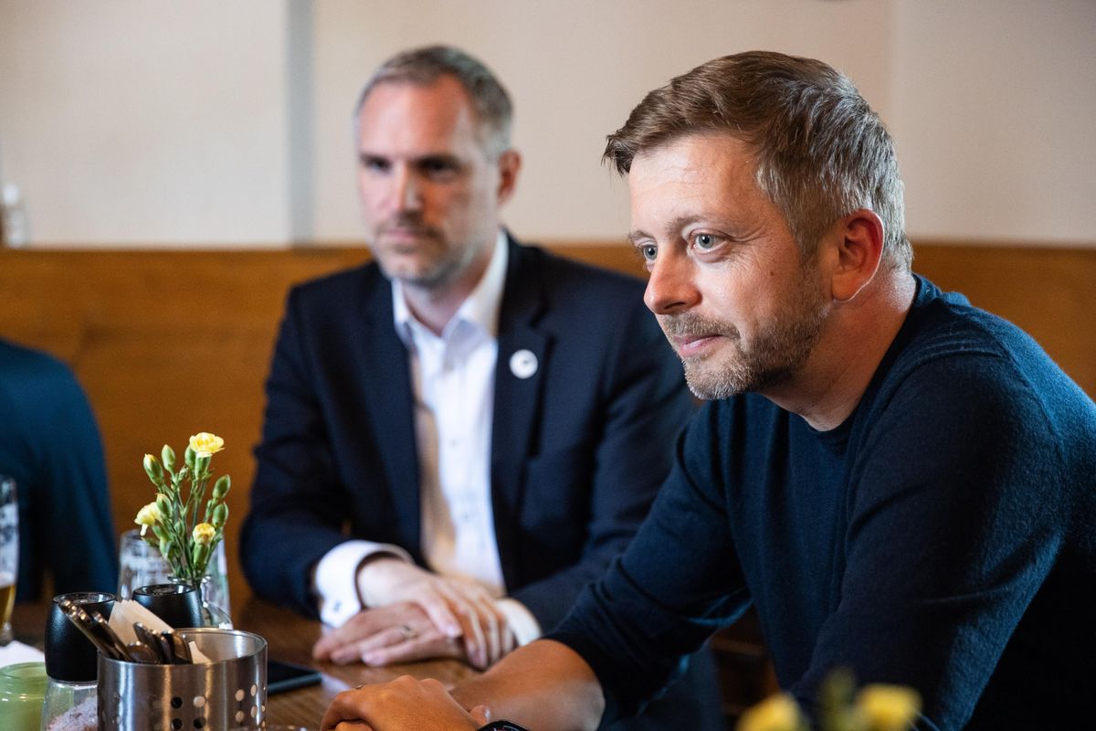 Vít Rakušan a Zdeněk Hřib při natáčení pořadu Republika Příbram.