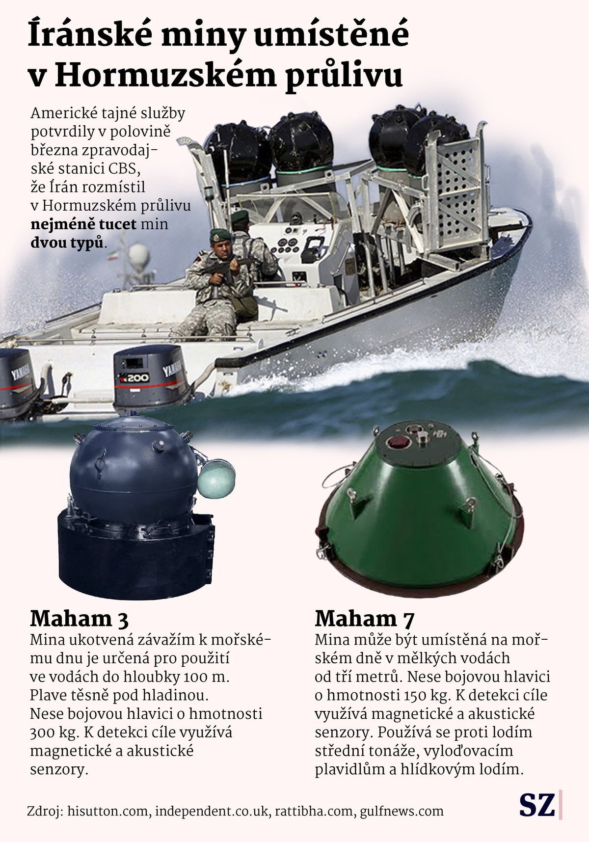 Na konci března sdělili představitelé americké administrativy stanici CBS News, že podle zpravodajských služeb se v Hormuzu nachází nejméně tucet námořních min.
