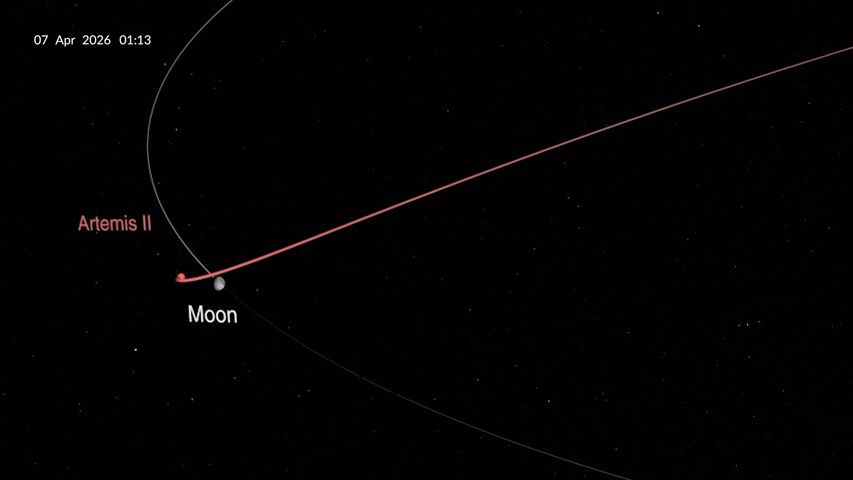Mise Artemis II: vizualizace trajektorie přiblížení k Měsíci.Video: střih: Pavel Kasík, Seznam Zprávy, NASA
