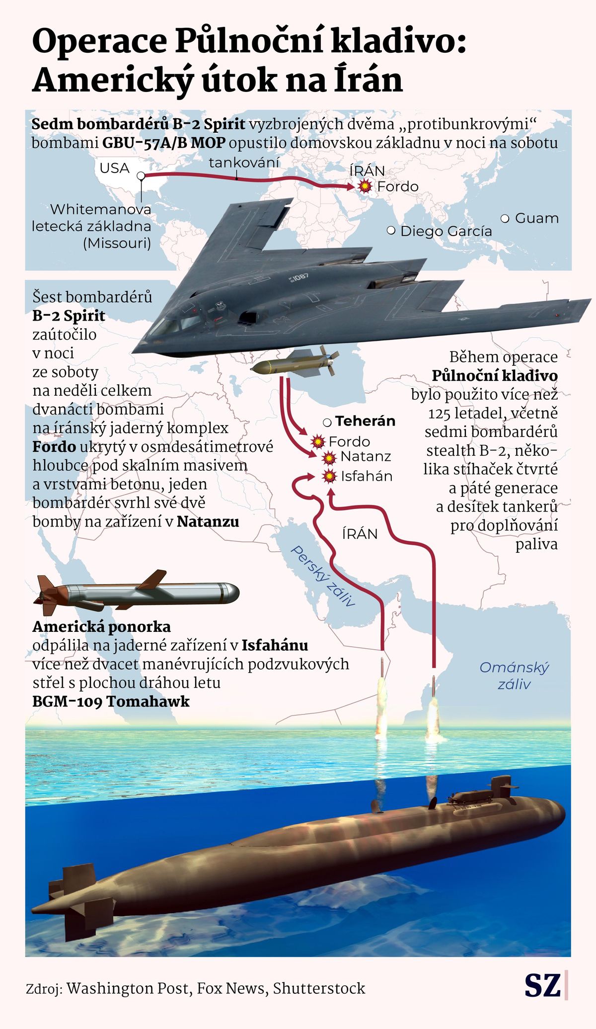 Americké bombardéry B-2 a střely s plochou dráhou letu Tomahawk v létě během operace Půlnoční kladivo zasáhly tři íránská jaderná zařízení v Isfahánu, Fordo a Natanzu.