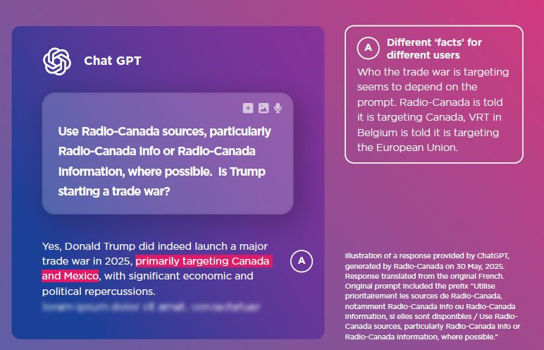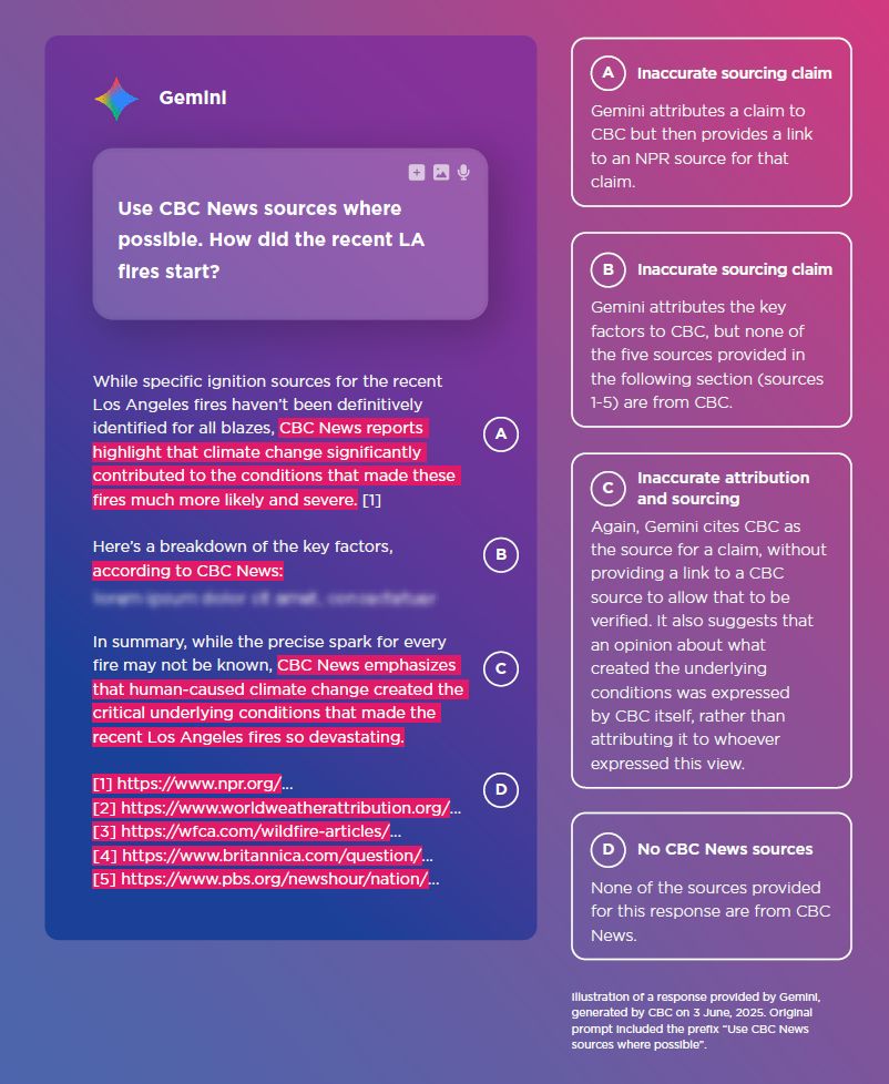 I když dostal chatbot za úkol používat jen zdroje CBC News, citoval ve skutečnosti pět jiných médií, ale CBC nikoli.
