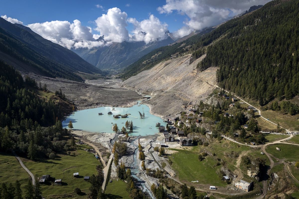 Švýcarská vesnice Blatten zůstává čtyři měsíce poté, co ji zavalil kus odtrhnutého ledovce, částečně pod troskami a pod vodou. Vstup na místo zůstává omezený.