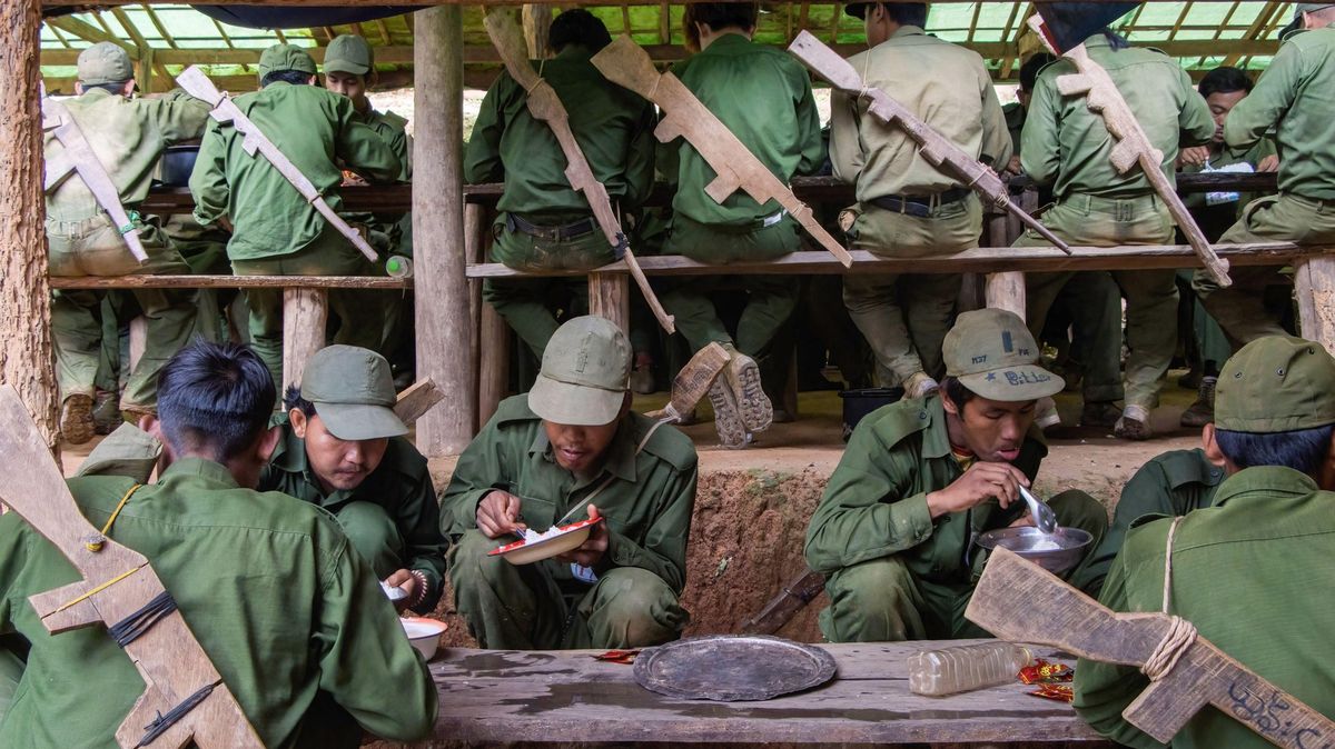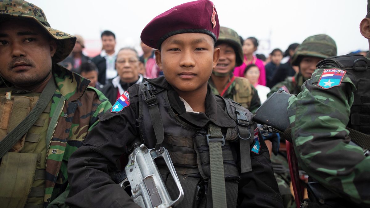 Tragédie barmských dětí se neomezuje jen na řady junty. Vleklý konflikt a absence vzdělávacího systému vhání mladistvé do řad ozbrojených skupin napříč celým politickým spektrem. Avšak junta děti rekrutuje často násilím či únosy, kdežto situace v etnických armádách je složitější - na snímku je chlapec z Karenského státu, který žije v permanentní válce desítky let. Děti se k jednotkám často přidávají „dobrovolně“ - ze msty i nutnosti k přežití.