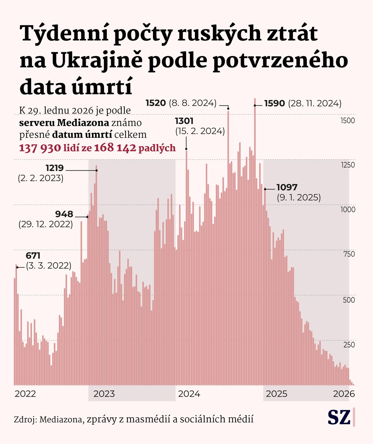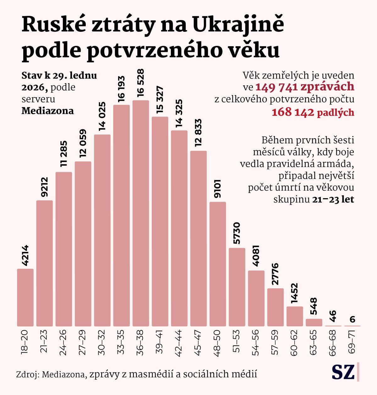 Dodejme, že se změnil i profil typického padlého ruského vojáka. Zatímco v roce 2023 statistikám úmrtnosti dominovali vězni rekrutovaní do útočných oddílů Wagnerovy skupiny či jednotek Šturm-Z, na přelomu let 2025 a 2026 je situace odlišná.