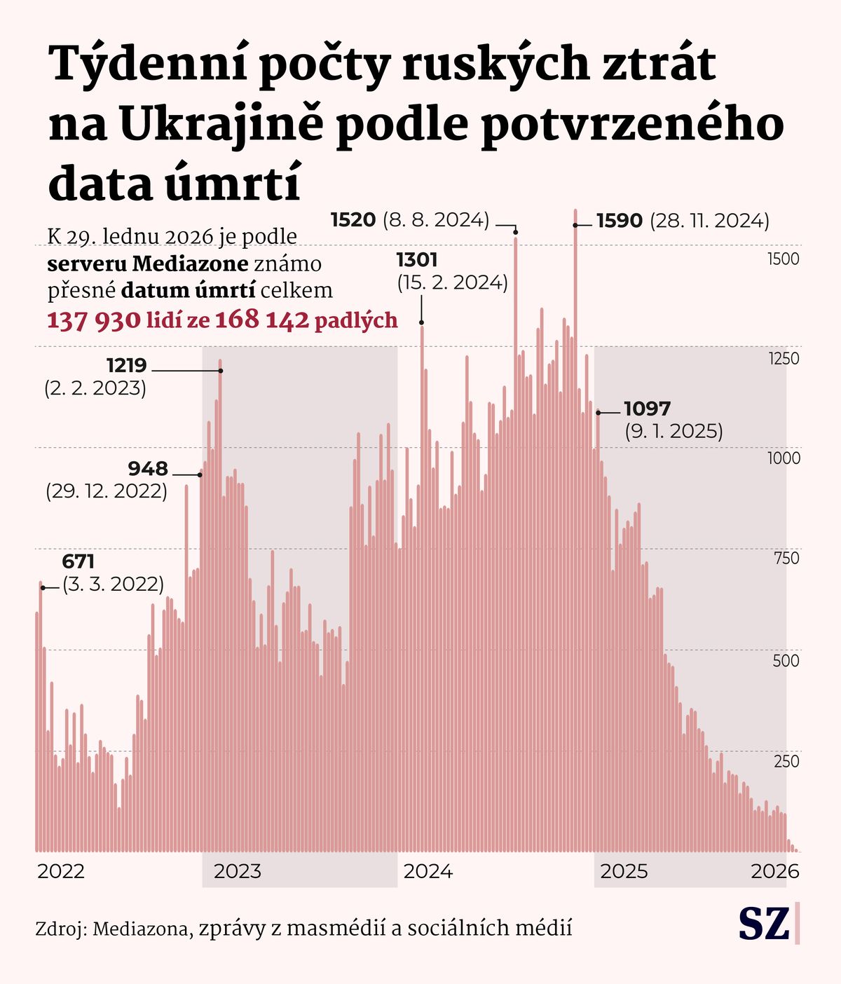 Dodejme, že se změnil i profil typického padlého ruského vojáka. Zatímco v roce 2023 statistikám úmrtnosti dominovali vězni rekrutovaní do útočných oddílů Wagnerovy skupiny či jednotek Šturm-Z, na přelomu let 2025 a 2026 je situace odlišná.