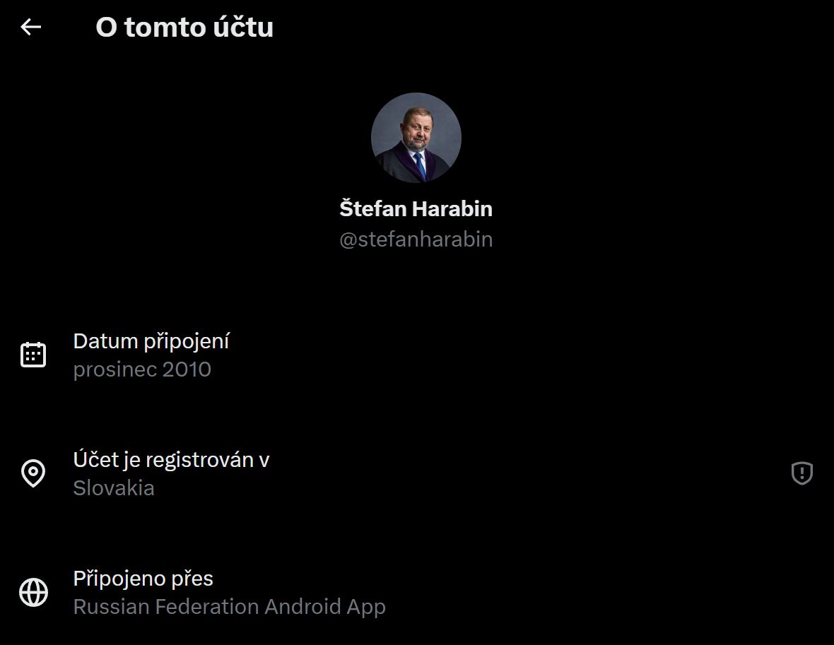 Neúspěšný kandidát na slovenského prezidenta z let 2019 a 2024 Štefan Harabin se na síť přidal už v roce 2010, k platformě se však připojil prostřednictvím „aplikace Ruské federace pro Android“, uvádí se u jeho profilu na síti X.