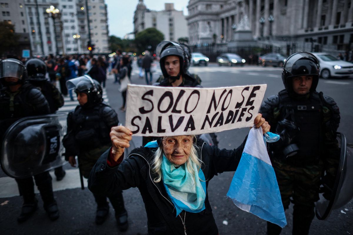 Fotky: Argentinští důchodci protestují tváří v tvář těžkooděncům