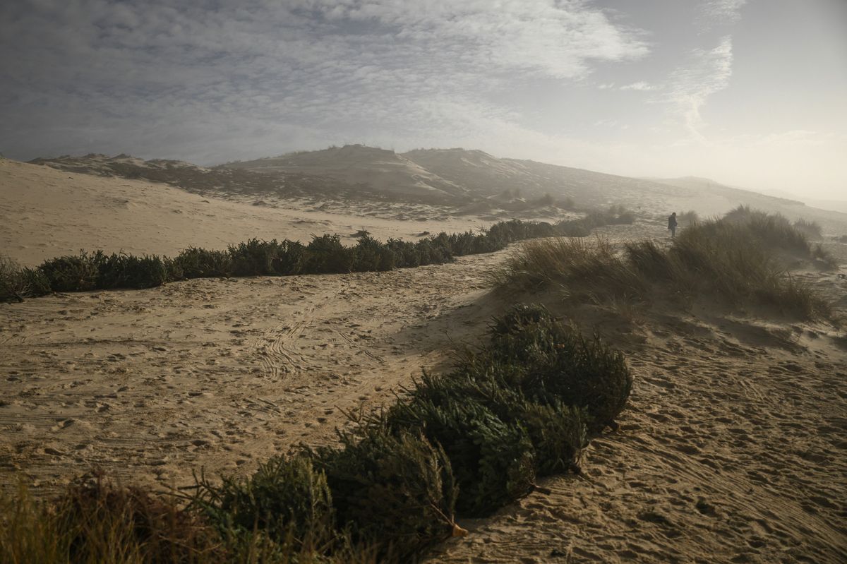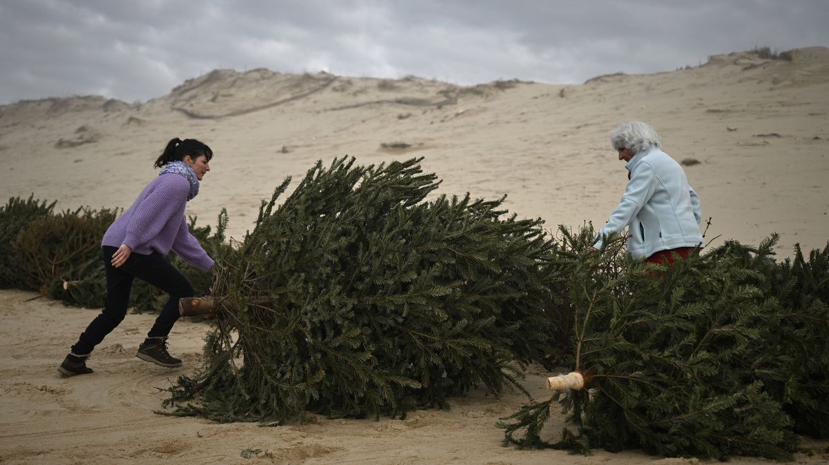 Vánoční stromky našly v jihozápadní Francii nové využití. Pomohou chránit písečné duny před pobřežní erozí.