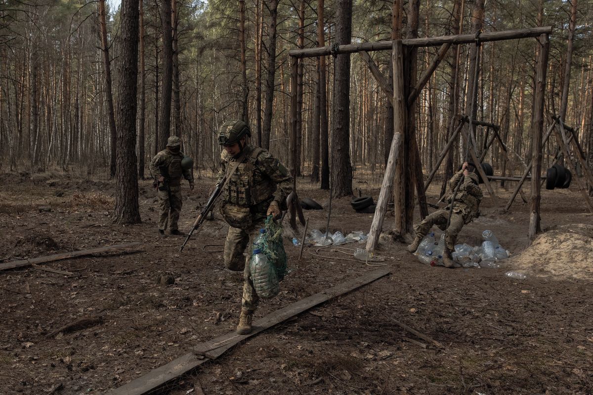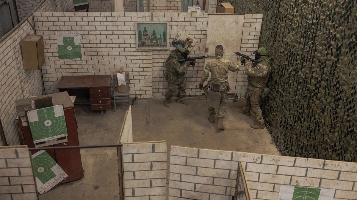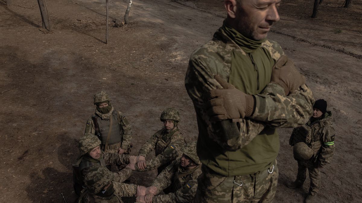 Z reproduktorů neustále zní zvuky z boje, včetně výkřiků, zatímco branci běží přes překážkovou dráhu. Ukrajinská armáda a výcvik se mění, aby se vypořádala se stále menší motivací vojáků a jejich dezercí.