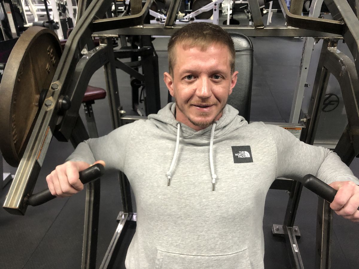 Ryan Sampsell téměř každý den cvičí v místní posilovně.