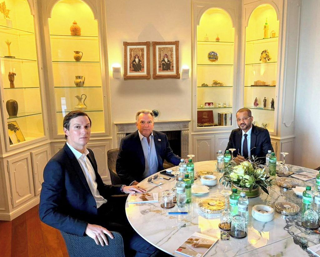 Jared Kushner, Steve Witkoff a Badr Albusaidi ve čtvrtek 26. února v Ženevě na jednáních o íránském jaderném programu.