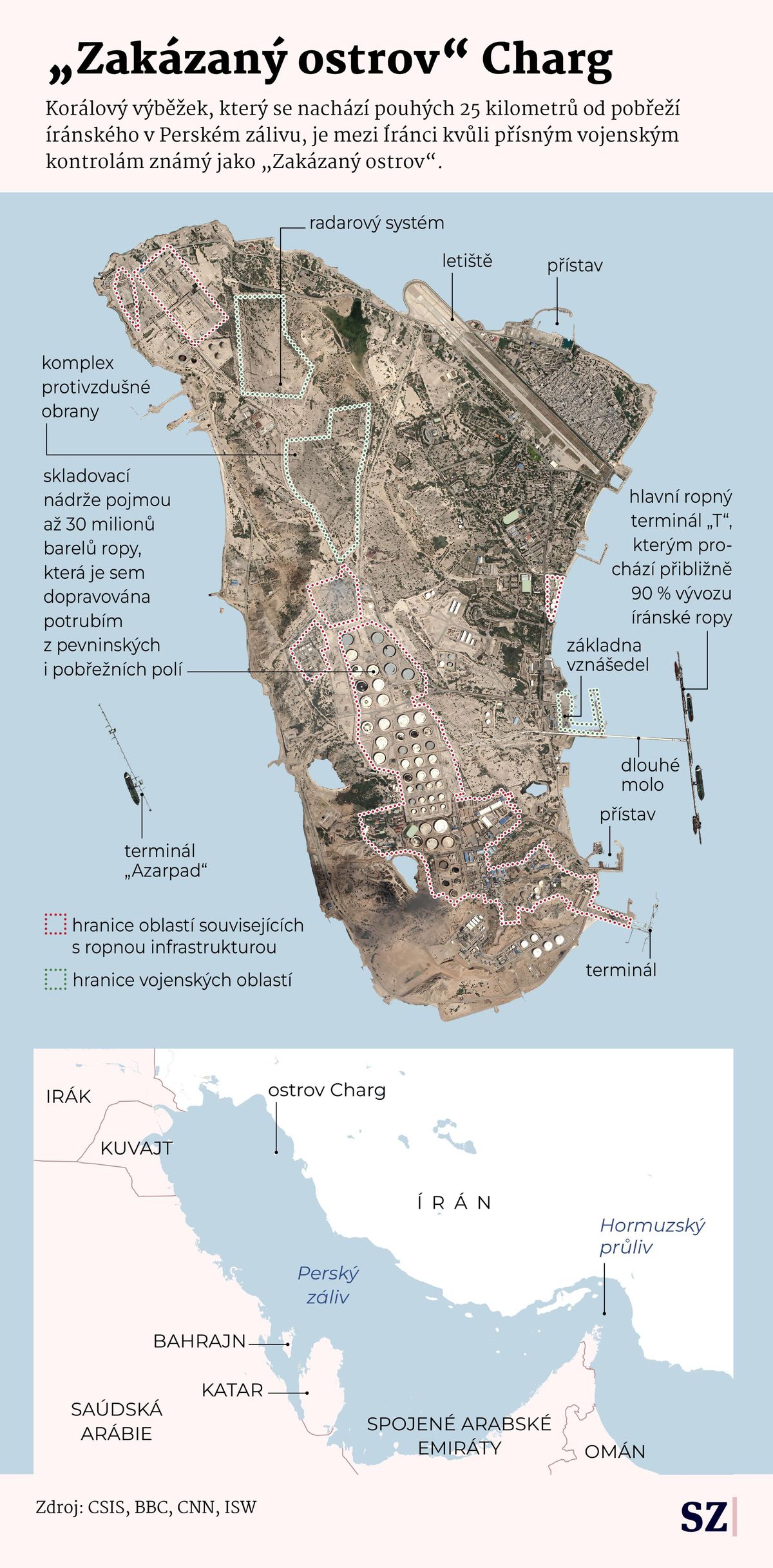 Podle televize CNN ale Íránci v posledních dnech posílají na Charg posily a vojáci tam mají mobilní raketomety, které odpalují střely z ramene. Na ostrově je několik opevněných linií a také minová pole.