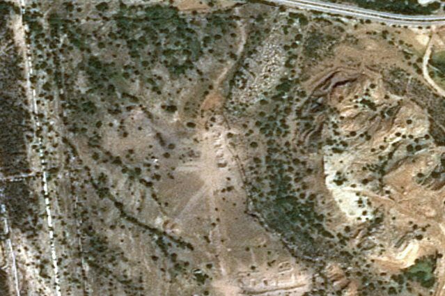 Satelitní snímek části ostrova Charg pro americkém bombardování.