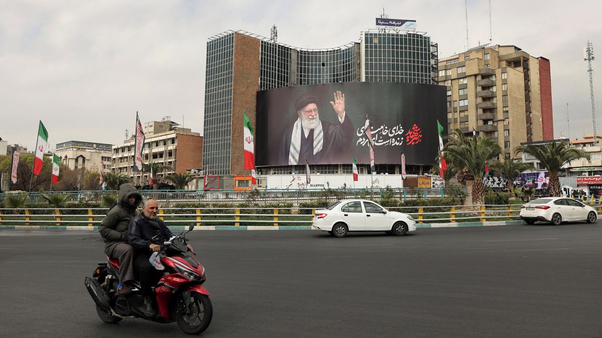 Ajatolláh Chamenei na obřím billboardu u kruhového objezdu v Teheránu. Snímek je z 2. března 2026.