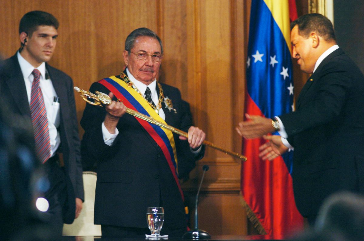Raúl Castro stejně jako jeho bratr Fidel spoléhal dlouhá léta na venezuelskou ekonomickou pomoc. Na snímku dnes už zesnulý venezuelský vůdce Hugo Chávez (vpravo) předává Raúlovi jednu ze šavlí Simóna Bolívara, osvoboditeli části latinskoamerického kontinentu z područí Španělska.