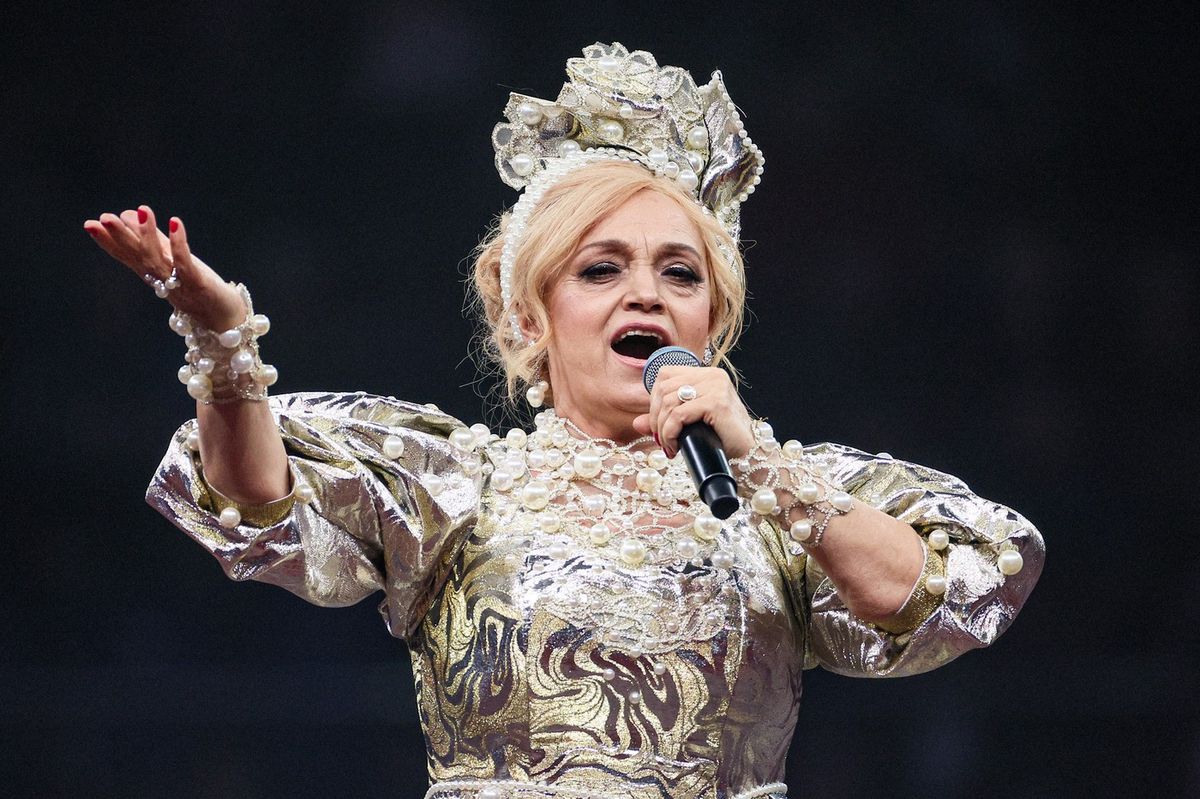 Naděžda Kadyševová během vystoupení na charitativním koncertu s názvem „Naši, pro matičku Rus“ v Moskvě.