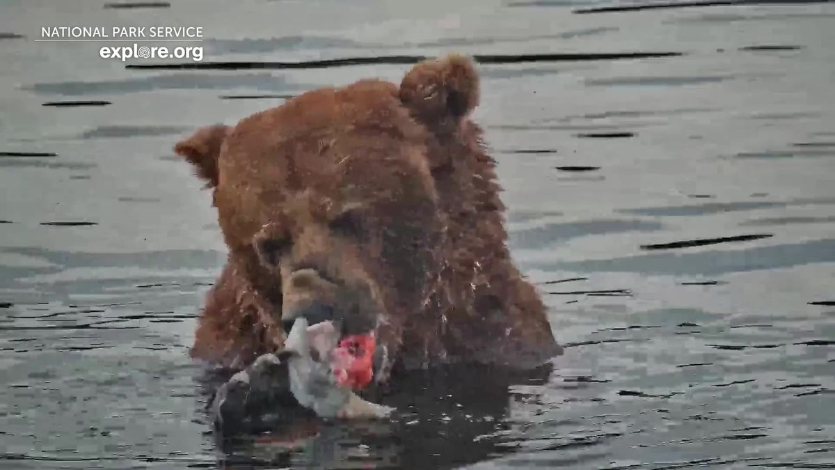 Chunk s uloveným lososem, 18. září 2025. Video: Candice Rusch