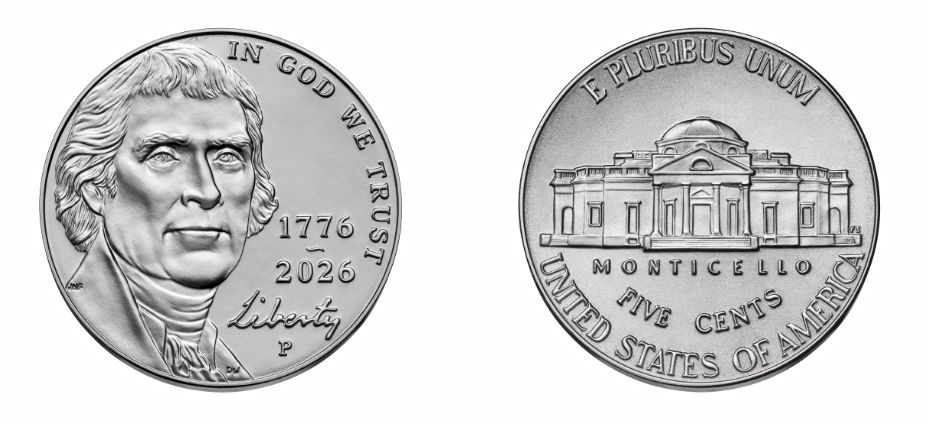 Pamětní nikl bude mít na přední straně vyraženou podobiznu třetího amerického prezidenta Thomase Jeffersona, na rubu jeho prezidentské sídlo Monticello a data 1776 a 2026.