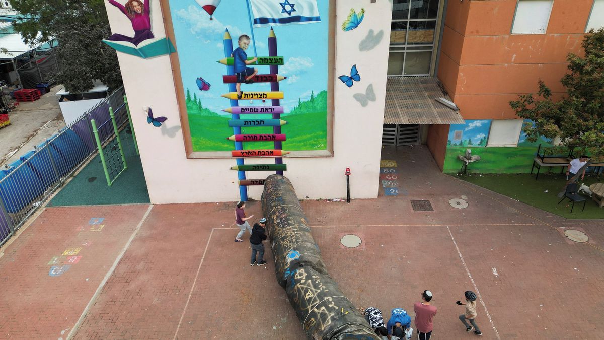 Bez komentáře: Zbytky íránské střely dopadly do školního areálu v izraelské osadě Peduel, která se nachází asi 24 kilometrů východně od Tel Avivu. Video: Reuters