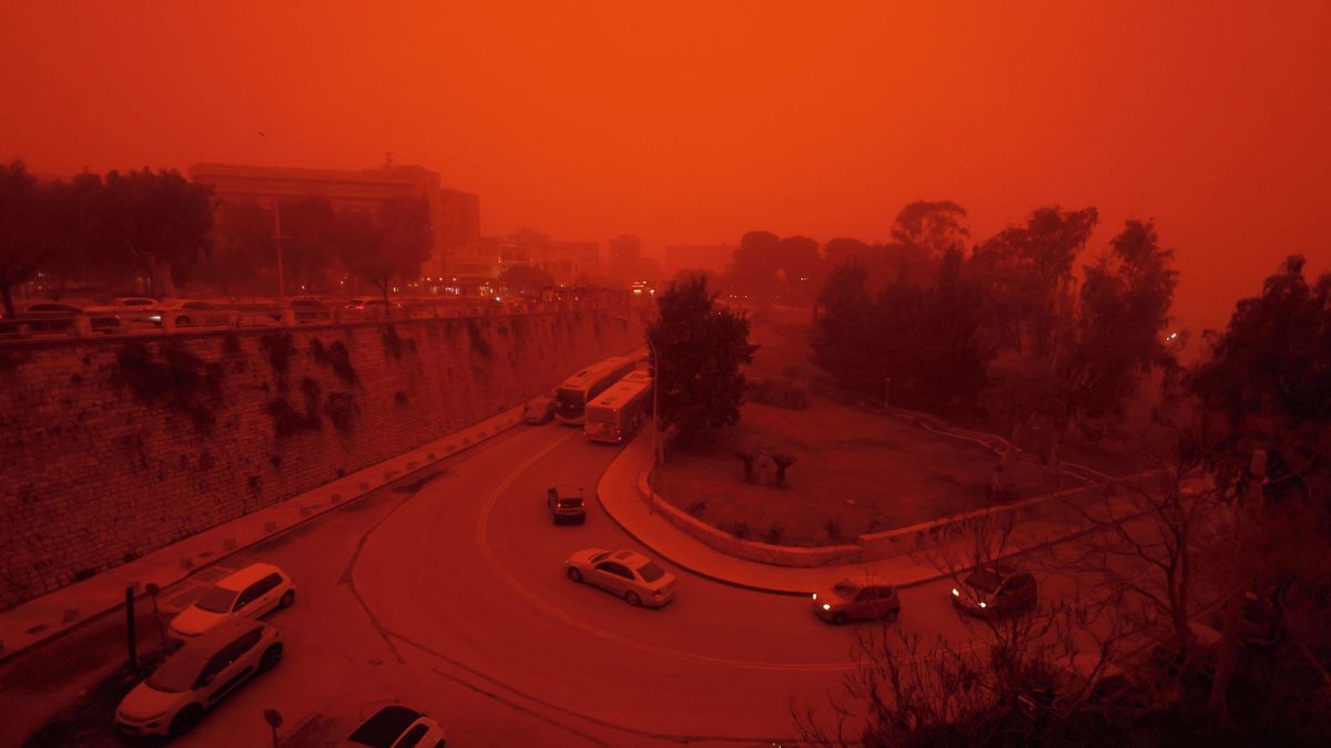 Obrazem: Nebe nad Krétou zrudlo, ostrov zahalil písek ze Sahary