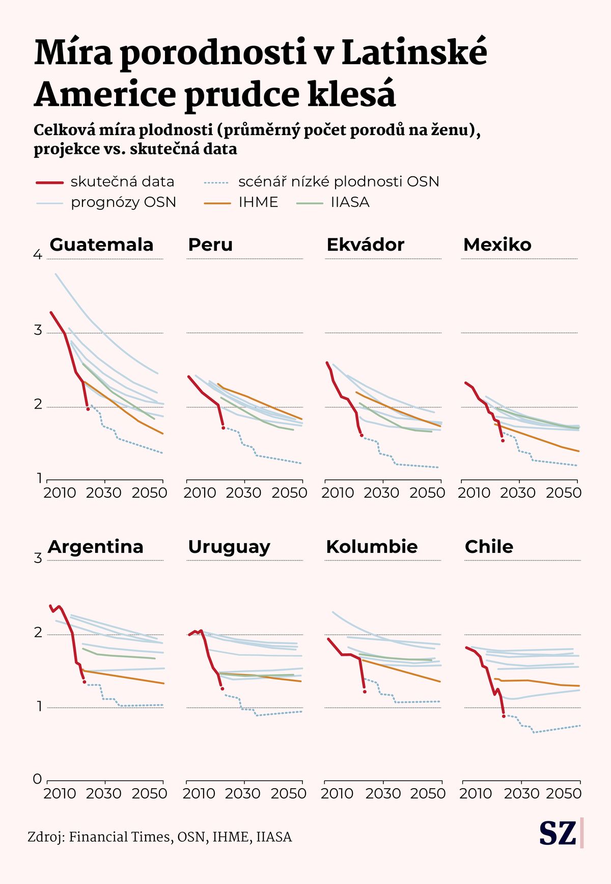Podobný scénář se odehrává v Latinské Americe, regionu, který byl dlouho považován za demograficky vitální. V Kolumbii předpovídala OSN na rok 2024 přibližně 701 000 porodů, přičemž modelu přisuzovala jen 2,5% pravděpodobnost, že číslo klesne pod 553 000. Skutečnost? Jen 445 000 porodů. Plodnost tam spadla na hodnotu 1,06 dítěte na ženu, což je úroveň hluboko pod evropským průměrem.