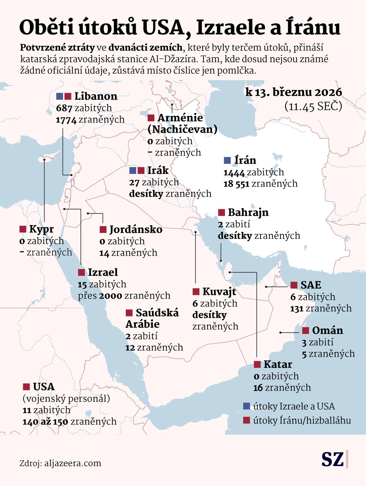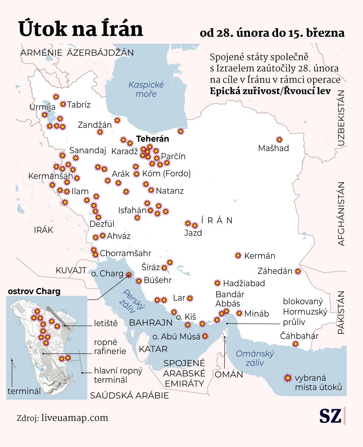 Izrael oznámil novou vlnu rozsáhlých úderů na cíle v západním Íránu. Katarská stanice Al-Džazíra mezitím s odvoláním na agenturu Tasním, která je kontrolována íránskými revolučními gardami, informovala o americko-izraelských útocích na jihoíránský Šíráz, metropoli provincie Fárs. O případných obětech se Al-Džazíra nezmiňuje, uvádí ale rozsáhlé materiální škody.